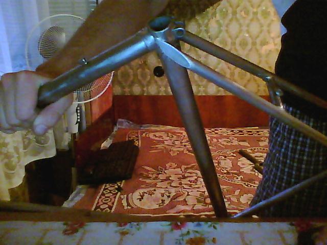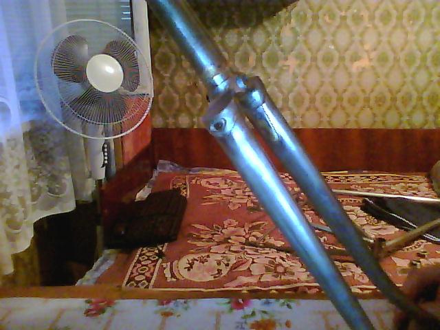 И совсем забыл, когда отчищал ржавчину (рама была покрашена в синий цвет, под ней грунтовка, а под ней ещё один слой походу был родной краски - впечатление будто взяли и не зачищая перекрасили), то под ней обнаружил совершенно немножко тёмно крассной краски и остатки черно-белых декалей, но разобрать что написано не получилось (осталась походу наклеечка только от последней буквы, но какая я не понял) - жаль что не сфоткал((((
