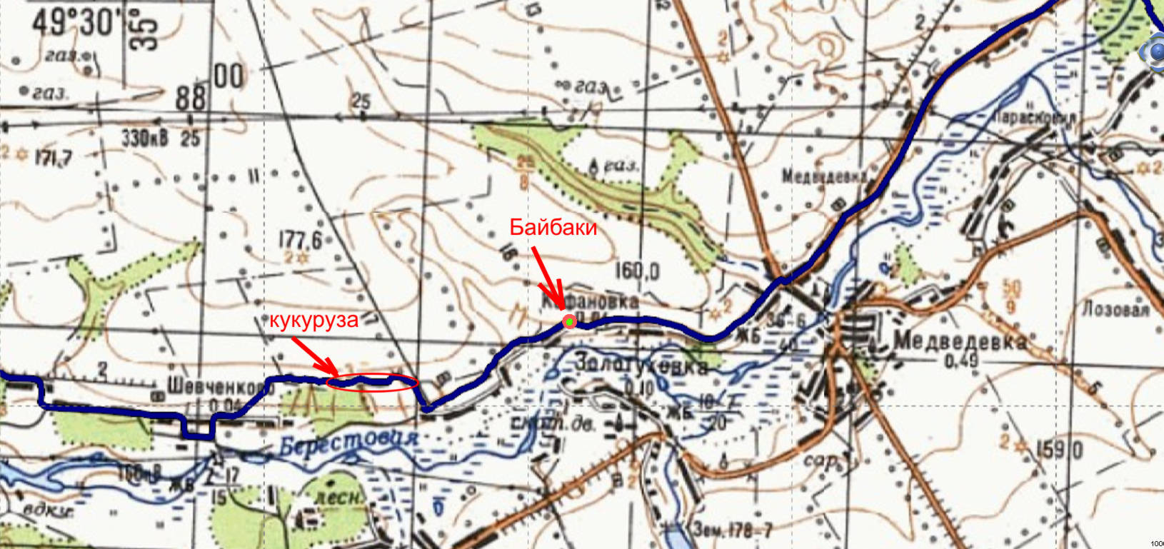 А вот как-то странно, мы ведь проезжали Медведевку,Парасковию и Мелиховку и ехали поправому барегу Берестовой,а на карте они по левому,так что мы через них как-бы и не ехали? :eek: