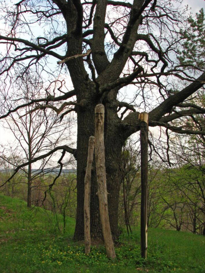 Идолы- то современные. Но, все равно, здорово закарабкаться на кручу, стать под дубом, а там они- идолы. Нет гарантии, что они сохранились там с прошлого года.