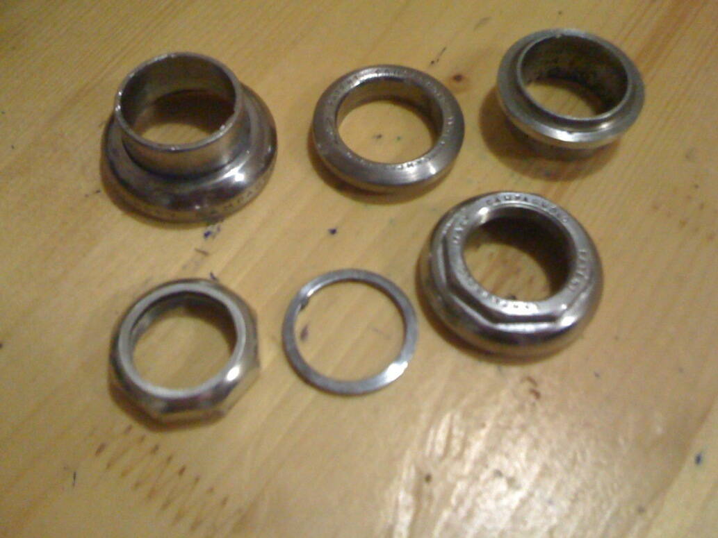 Rulevaya Campagnolo 1", stal', verhnyaya chashka i konus Chorus, nijnyaya-Record, vehnyaya gayka-alu, dorojki v poryadke, kosmeticheskoe sostoyanie horoshee, na vseh detalyah stoit kleymo.