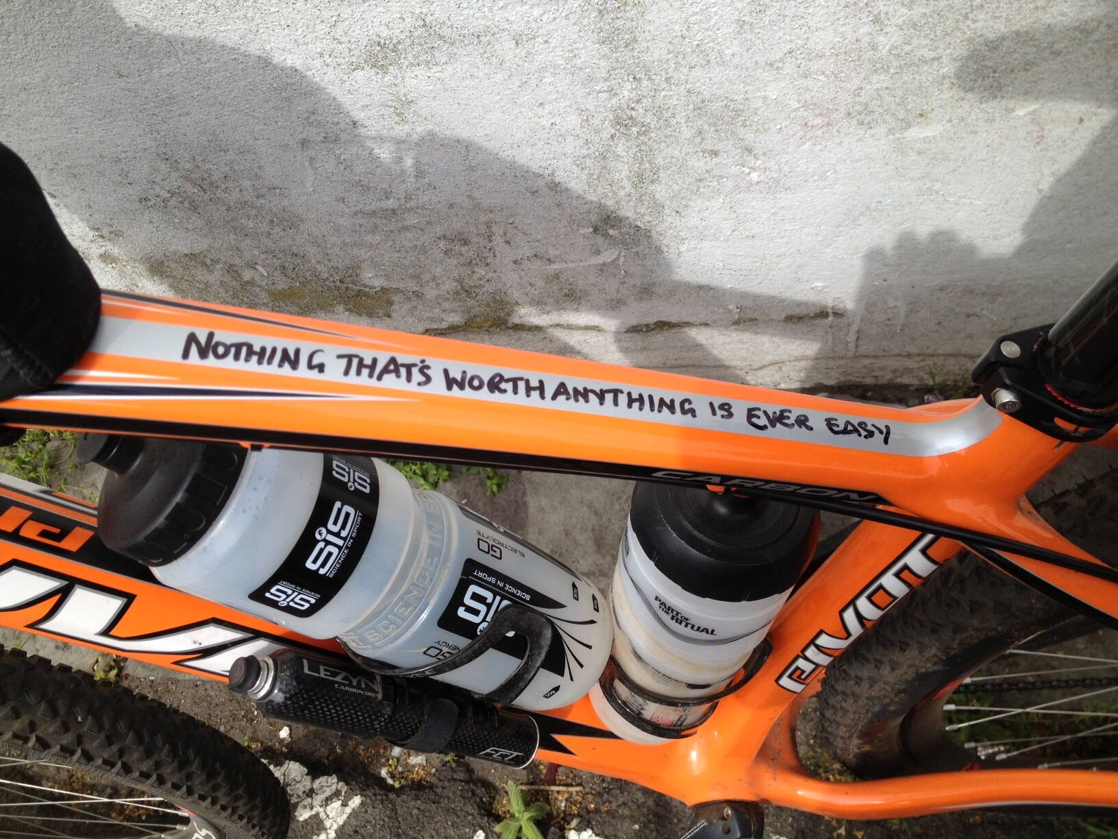 Надпись на раме: Nothing that's worth anything is ever easy (Ничего, что имеет ценность не дается легко).