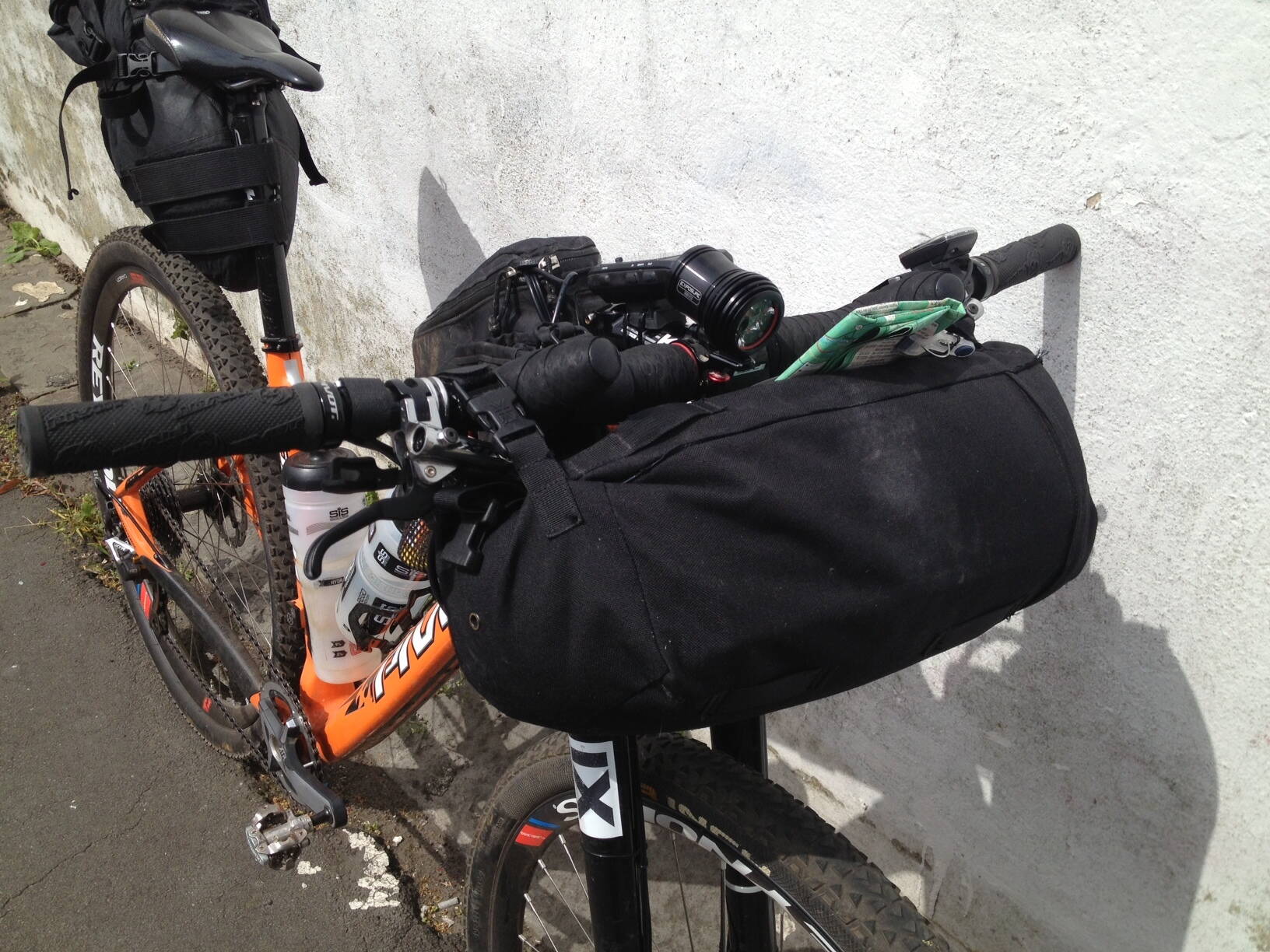 Руль: Kinesis Strut, 750 мм " был соблазн уменьшить ширину руля, но сумки, фара,крепления - занимают место. Изменение положения рук на руле, очень важно - поэтому были дополнительно установлены ручки (micro bar).