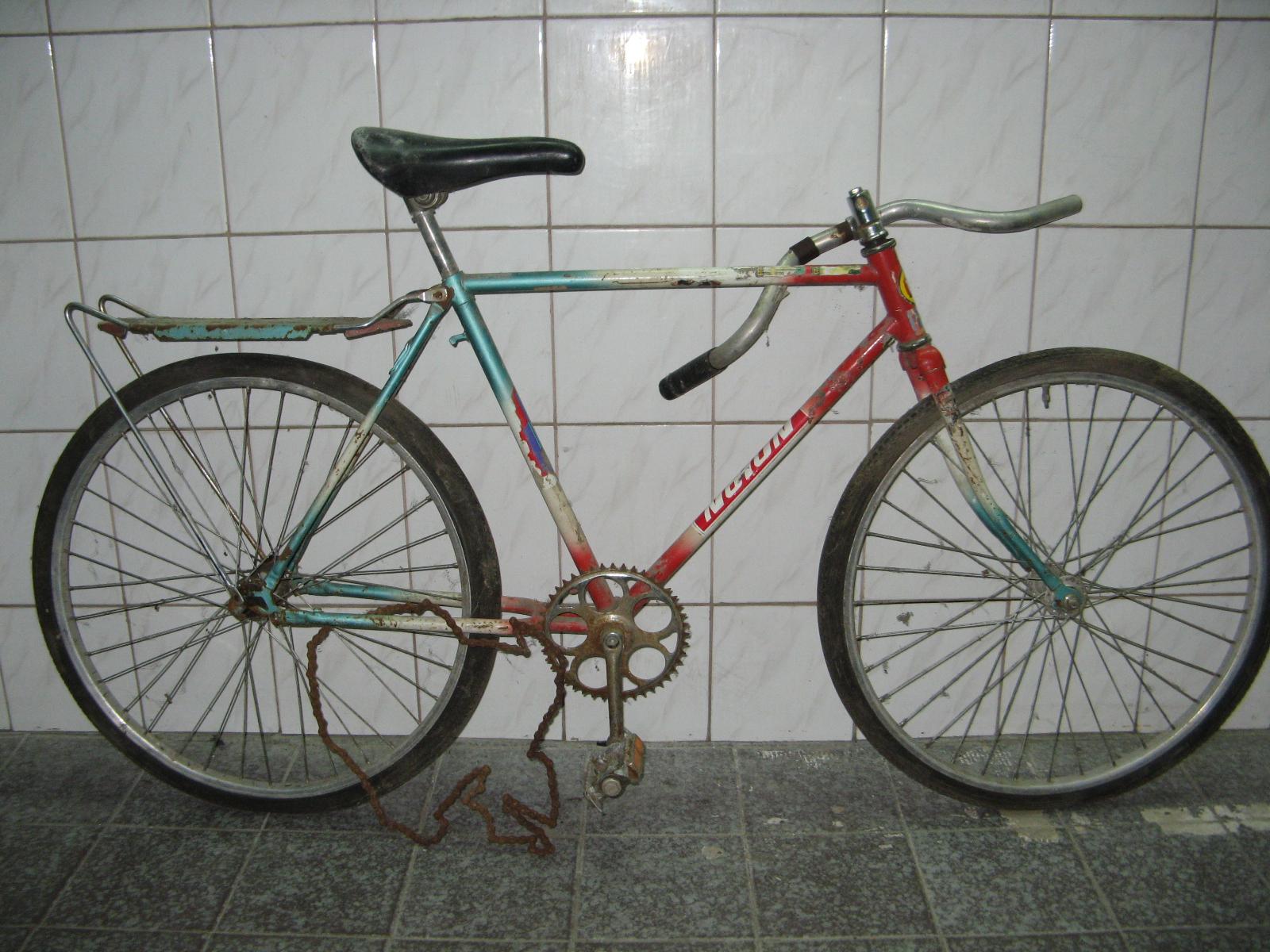 Похож на "Украину", только по размерам похож на "школьник" колёса 24. Взял за 50гр и моноблоки автоматы в подарок. Начну его крокодилит не поверите, с покрышек, найду какие-нибудь красивые цветастые и от их цвета буду плясать дальше., может кто-нибудь сможет предложит 24-е покрышки цветные?