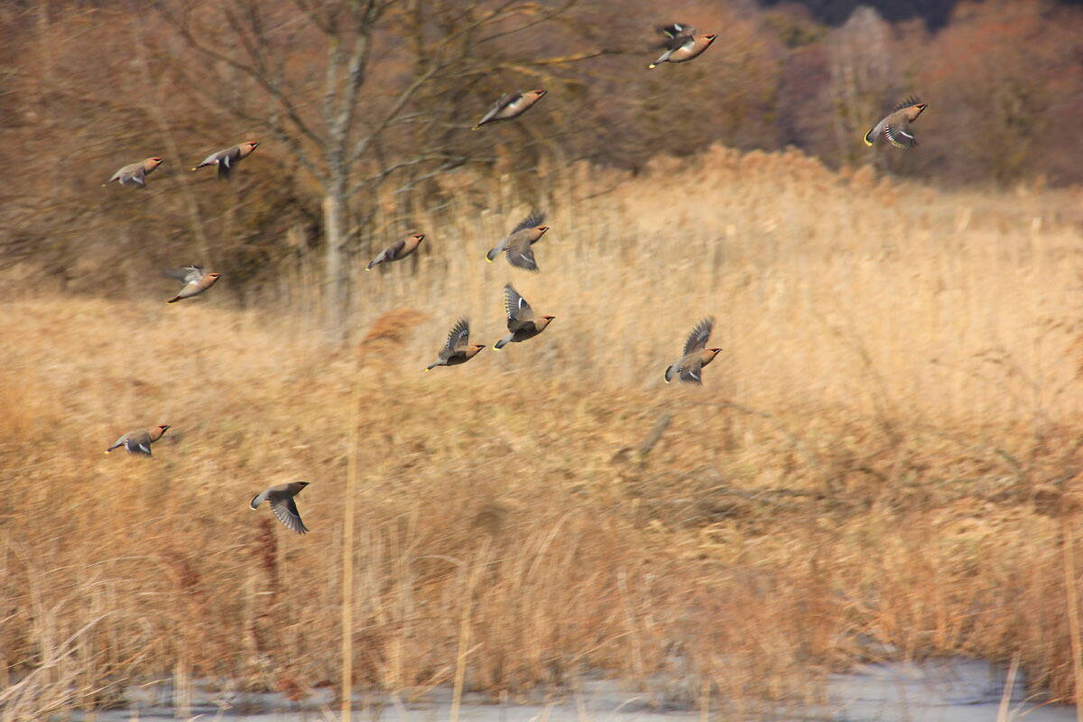 Стайка свиристелей в национальном парке "Гомільшанські ліси" у села Задонецкое 17-го марта.