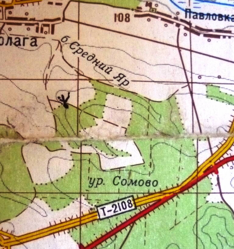Вот карта(примерно там где метка)! Если от Старой водолаги подниматься по яру, там грунтовка то она будет входить в лес и далее идти просекой широкой, вот от просеки по правой стороне, от дороги примерно метров 30, если память мне не изменяет там лес рубаный но стояли 2 дуба нереальной толщины.
