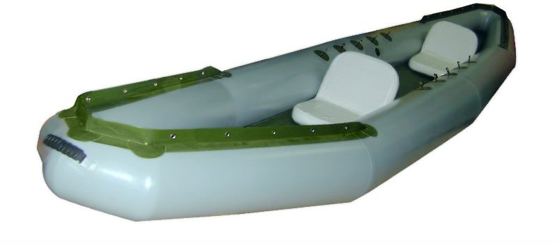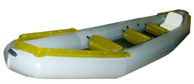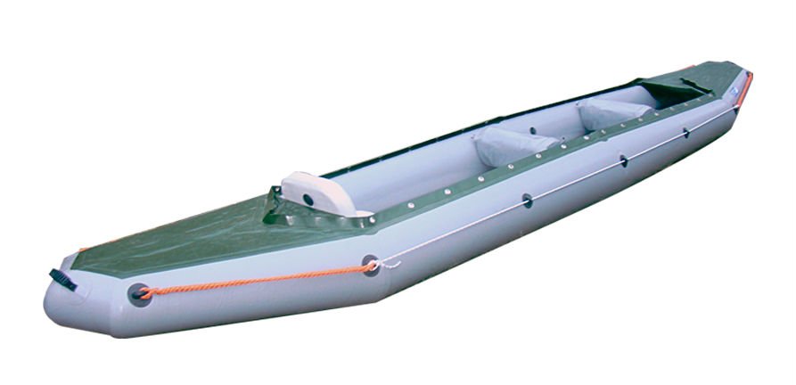 - специальная палуба-вкладыш вложенная в лодку выше нижней границы баллонов обеспечивает поперечную жесткость конструкции сопоставимую с прочностью каркасной байдарки;