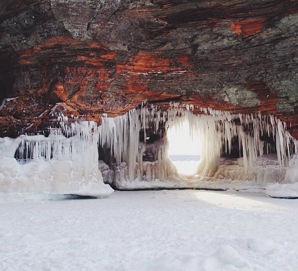 К примеру, в штате Висконсин в районе Апостольских островов можно совершить прогулку по замерзшему озеру Верхнее к ледяным пещерам. Пещеры образовались вдоль побережья в морских бухточках.