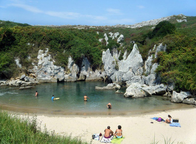 Плайя-де-Гульпиюри (Playa de Gulpiyuri) - пляж-ракушка в городе Льянес на севере Испании. Это живописный песчаный пляж, который уютно расположился среди лугов в ста метрах от Бискайского залива. Пляж Плайя-де-Гульпиюри (Playa de Gulpiyuri) по форме напоминает морскую ракушку, имеет в длину всего лишь 40 метров и является известной местной достопримечательностью.