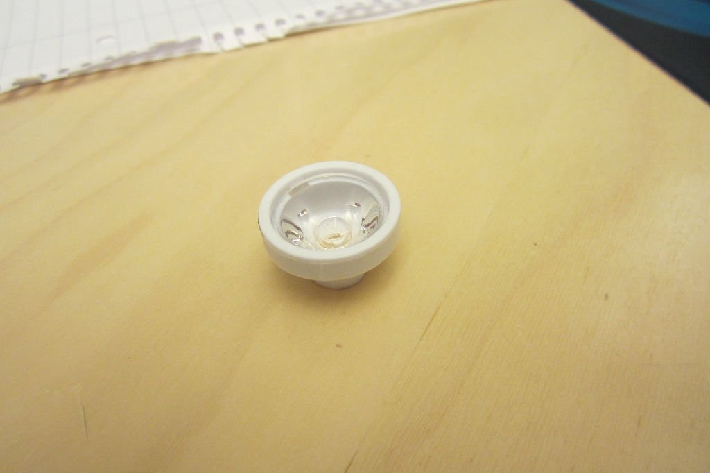 Далее следует задуматься об оптике такой фары. У меня задуматься не получилось, ибо хотелки очень разные: фара должна хорошо освещать ближнюю область, при этом светить вдаль, при этом не ослеплять встречных, при этом быть заметной сбоку. Как минимум один пункт надо выкинуть, и я решил не делать дальний свет, ибо в городе он не нужен. Я решил использовать готовые линзы, купленные когда-то полудесятком штук на DX. Две одинаковые TIR (ПВО) линзы, при желании можно будет заменить одну на более "дальнобойную".