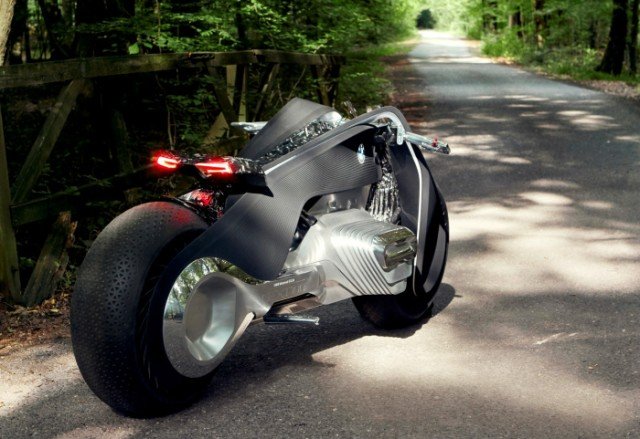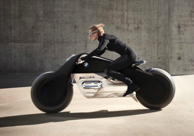 В отделении мотоциклов баварской компании BMW Motorrad продемонстрировали, как будет выглядеть мотоцикл через тридцать лет. Это шедевр из серии концептуальных машин Vision Next 100 от различных брендов BMW Group. Байк радикально выбивается из существующих веяний мотодизайна. Но вместе с тем, он несет в себе характерные черты, а также мелкие детали, присущие BMW.