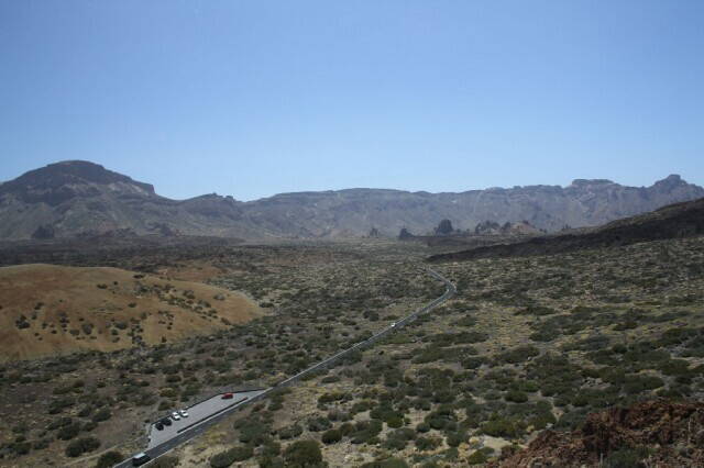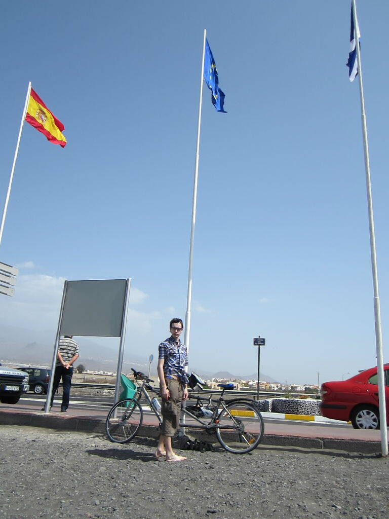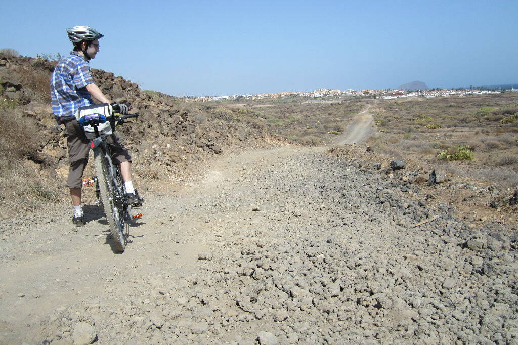 Немного поблуждав по автостоянке у аэропорта, мы выехали на нужную нам дорогу. И покатили в CostadelSilencio по второстепенной дороге вдоль автострады TF-1. Первые подъемы меня не на шутку испугали. Впервые за очень долгое время мы ехали по автомобильной дороге. При выезде из аэропорта ветер (45 – 55км/ч) дул в спину и помогал заезжать в горки.