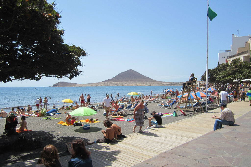 Зашли в порт, решили купить билеты на паром на соседний остров – LaGomera. Однако, расписание таково, что отложили поездку на следующий день. Долго думали – брать ли с собой тандем? Он не влазит в стандартное багажное место и за него пришлось бы платить как за провоз автомобиля. Смутно припоминая рельеф Ла-Гомеры, решили что поедем туда «пешком». Ну а пока – весь день лежим на пляже, греемся на солнце, охлаждаемся совсем не горячим ветром, плаваем в Атлантическом океане на свежеприобретенном надувном плавсредстве. Пляж – песчаный, лежак – платный. По пляжу ходит кассир – спасатель и следит за порядком.