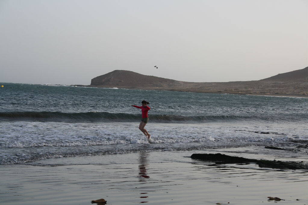 Около MontanaRoja есть хороший пляж, он с нудистской направленностью (как и большинство), но море там отличное. El Medano встретил нас потрясающим песчаным пляжем, сильнейшим встречным ветром и волнением на море.