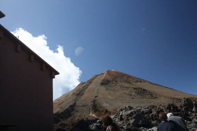 Наконец, через 7 минут подъема кабинка прибывает на высоту 3515м. Тут действительно прохладно и дует ветерок (5-7 м/с), хотя и солнечно. Нам, приехавшим из Финляндии, почти тепло, но все же решили одеть шапки и велоперчатки. А вот у испанцев эти условия вызывают ужас. На табло о состоянии погоды мы увидели: «weatherontop: ExtremeColdConditions , -1C, strongwind». Особенно умиляют посетители, забравшиеся на верхнюю площадку в шлепанцах и пляжных шортах.
