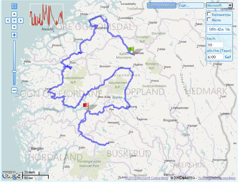 Dombas- оз. Gautsjoen – Eikesdal- Langfjorden- Andalsnes- Trollstigen – Sylte- Geiranger – Hellesylt- Stryn - Invikfjord – Utvik – Skei - Moskog - - Eldalsosen – Oppdal- Dragsvik - Hella Hermansverk- Sognadalsfjora- Hafslu- Gaupne- Luster- Skjolden- пер. Sognefjoll 1434 м – Lom – Randsverk- Beitostolen - оз. Vangsmjosa – Uppdal- Laerdal - Aurland- Flam- Rallarvegen- Finse- Haugastol- Geilo