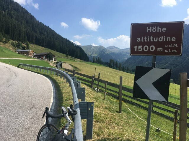 Спустился опять в долину реки Инн и опять началась жара. Позади 7 перевалов из 8. Впереди последний. Крутой, но короткий. И, как оказалось, самый убийственный. Подъем со стабильными градиентами 8-12% по южному склону горы почти без тени. Гармин показывал иногда +42. Думал не залезу. Огромное спасибо бабуле на минивене, которая поделилась полторушкой воды.
