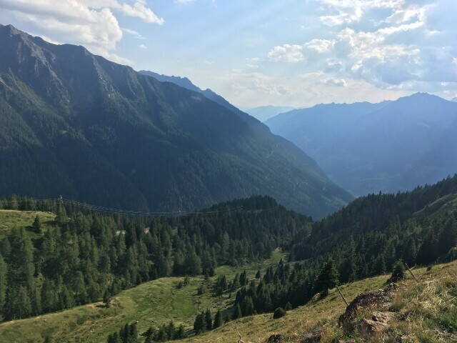 И вот начало самого затяжного подьема на маршруте - на перевал Пенсер Йох на высоте 2211м. Подьем начинался примерно с 600м и протяженность более 30 км. Кончилась лирика и пришлось серьезно поработать.