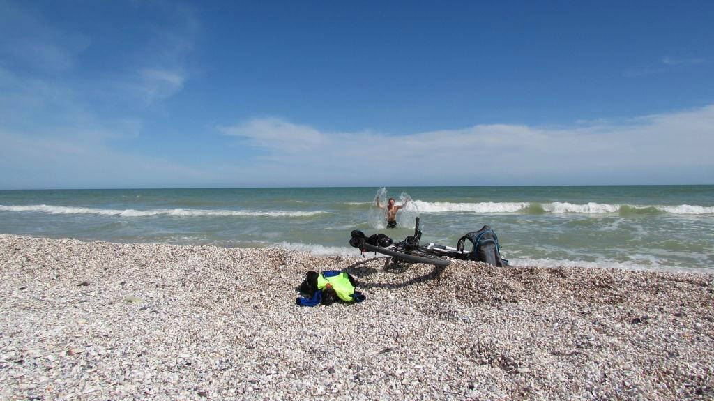За день вышло 71 км доезда от Мелитополя до Кирилловки, 11 км первый раз по косе. Второй заезд по делам и магазинам и обратно на косу 20 км. И еще один заезд днем километра 3-5 не писал. Короче 102-108 км где то.