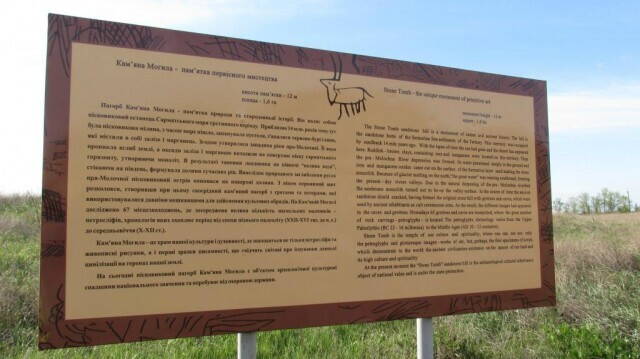 Как выяснилось, это вовсе на самом деле никакая не могила, а бывший островной песчаник, который был островом в древнем Сарматском море, миллионов 10 лет назад, что ли. Потом море ушло и Молочная река вымыла вокруг грунты, а он так и остался на высоте, потом просто обвалился. И оказалось нечто похожее на могилу.
