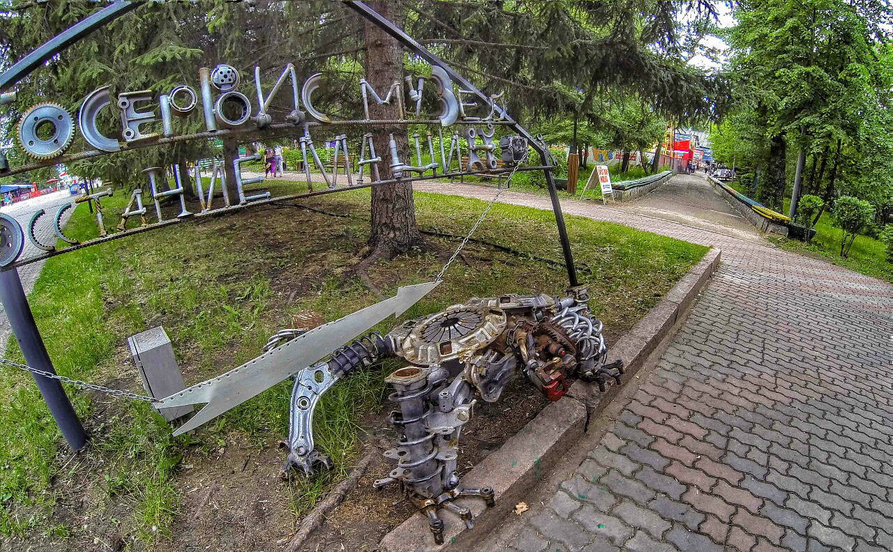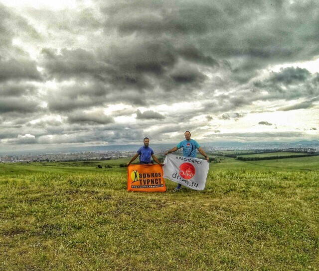 На следующий день Дима прокатил меня по городу, мы сфоткались каждый со своим флагом, мой Харьков Турист и у него Drom. ru.