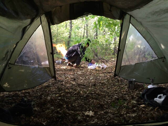 Палатка убрана... Хотя у нас нет ни веника не пылесоса....