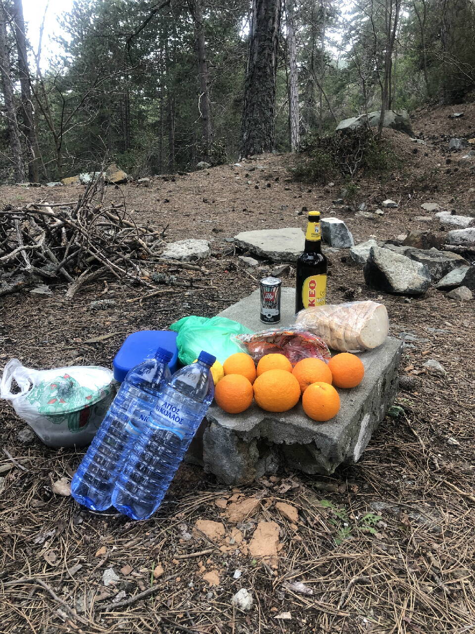 Вчора Олег бачив оголошення на facebook, що туристи залишили газовий балон неподалеку від аеропорту, а він нам дуже стане в нагоді, і ми не були впевнені що зі 100% гарантією зможемо тут купити(дарма). Отож перше місце – на аеропорт, біля нього солене озеро, а біля нього парк відпочинку. Дякуючи Володимиру нам таки вдалось знайти балон – а ми з Олегом вже завершили пошуки, і подались на виїзд. Потім наш шлях був в магазин Alphamega Larnaca Central по харчі та балони. Вже біля магазину я помітив що залишив свою флягу в тому лісочку, де ми шукали балон. Зрештою Олег мене виручив і в мене була фляга в цьому поході – він визвався поїхати й забрати її, а я не міг, так як ледве їхав – перелом давав про себе знати.