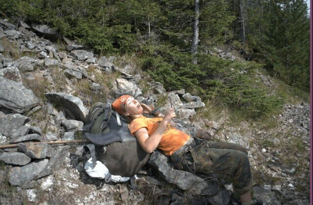 Мы медленно набираем высоту, все выше и выше поднимаясь из долины на гору. Наша группа уверенно продвигается по тропе. В экспедиционной команде 6 человек: Владимир, Василий, Павел, Александр, Марина и Альбина. Василий как всегда далеко впереди. На ходу он успевает обновлять и облагораживать маркировку туристической тропы. Вверху и впереди, вдоль всего хребта, куда лежит наш путь, мы замечаем полосу из светло-зеленых округлых крон. Эти кроны резко отличаются от темно-зеленых остроконечных елей.