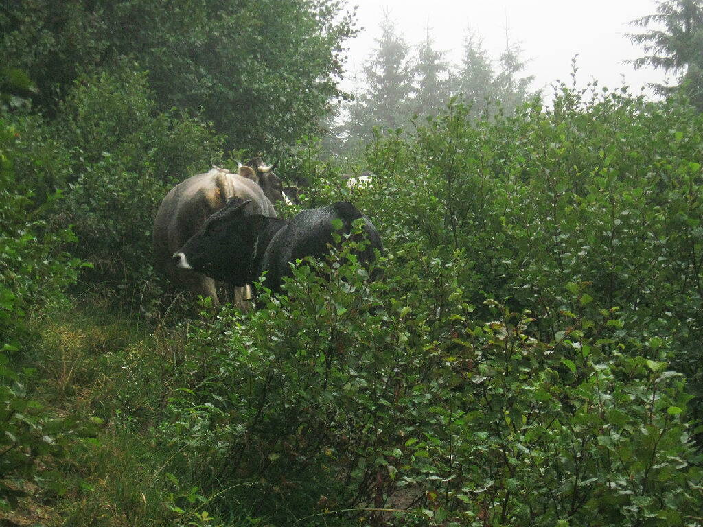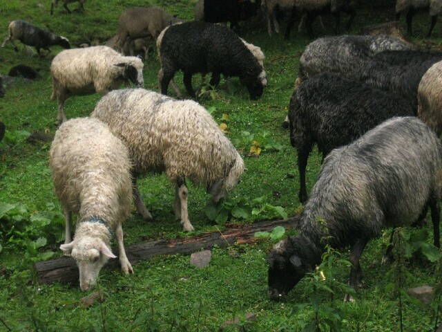 Потом сверху раздался лай собаки, затем второй, а потом и звон многочисленных колокольчиков — отару с полоныны Ворожеска погнали мимо нас на обеденную дойку.