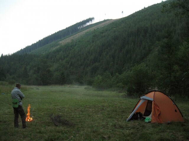 Под вечер тучки начинают собираться, а уже ночью пойдёт дождь. Поужинали, попили чайку, укладываемся ещё засветло. Тут опаньки! шаги и голоса снаружи. Выглянули — пара туристов прошли к ручейку и, судя по звукам рубящихся веток, которые стали доноситься оттуда спустя какое-то время, остановились на полянках чуть выше ручейка. Ладно, думаем, утром познакомимся. Сейчас спать.